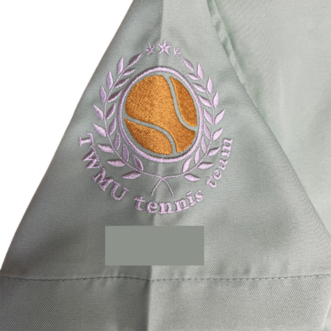左袖にはテニスボールをモチーフにした、部活オリジナルのロゴ刺繍。