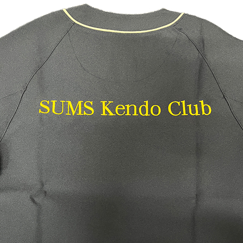 加工:背中 へ ゴールド糸で大きな文字 刺繍、右袖 へ ネーム刺繍
